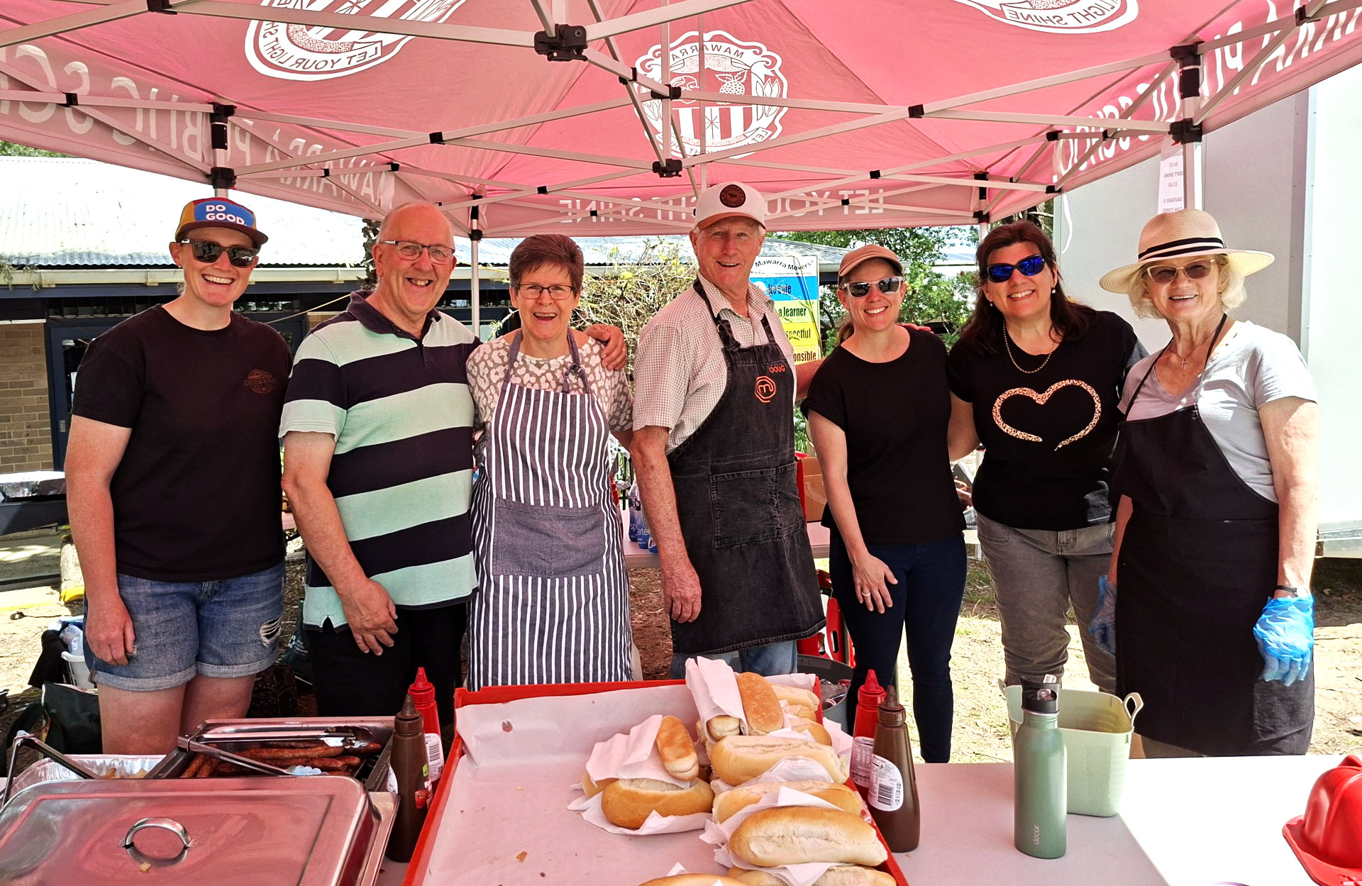 Some of our hard working team - from the left Carly, Greig, Heather, Doug, Michelle, Renae and Louise A huge thank you to the team of 14 volunteers who assisted on the BBQ stall and with pack up. It was a big day, but a very good day. CVC volunteers worked well with Mawarra parent volunteers and fed the hungry crowd.